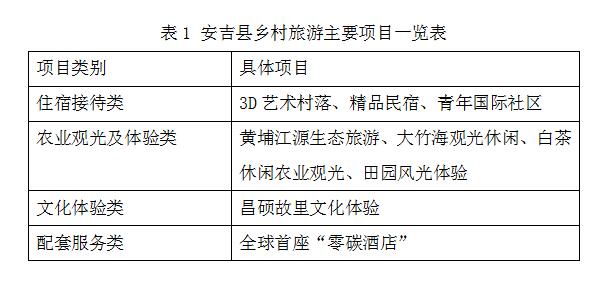 安吉县乡村休闲旅游目前形成了生态观光、文化体验、民宿体验三大龙头休闲旅游产品(见表1),借“黄埔江源"的品牌效应及影视作品宣传效应吸引游客,借“一村一景”的艺术村落、多元化品质民宿及智慧化服务留住游客是安吉县乡村旅游发展的成功经验。